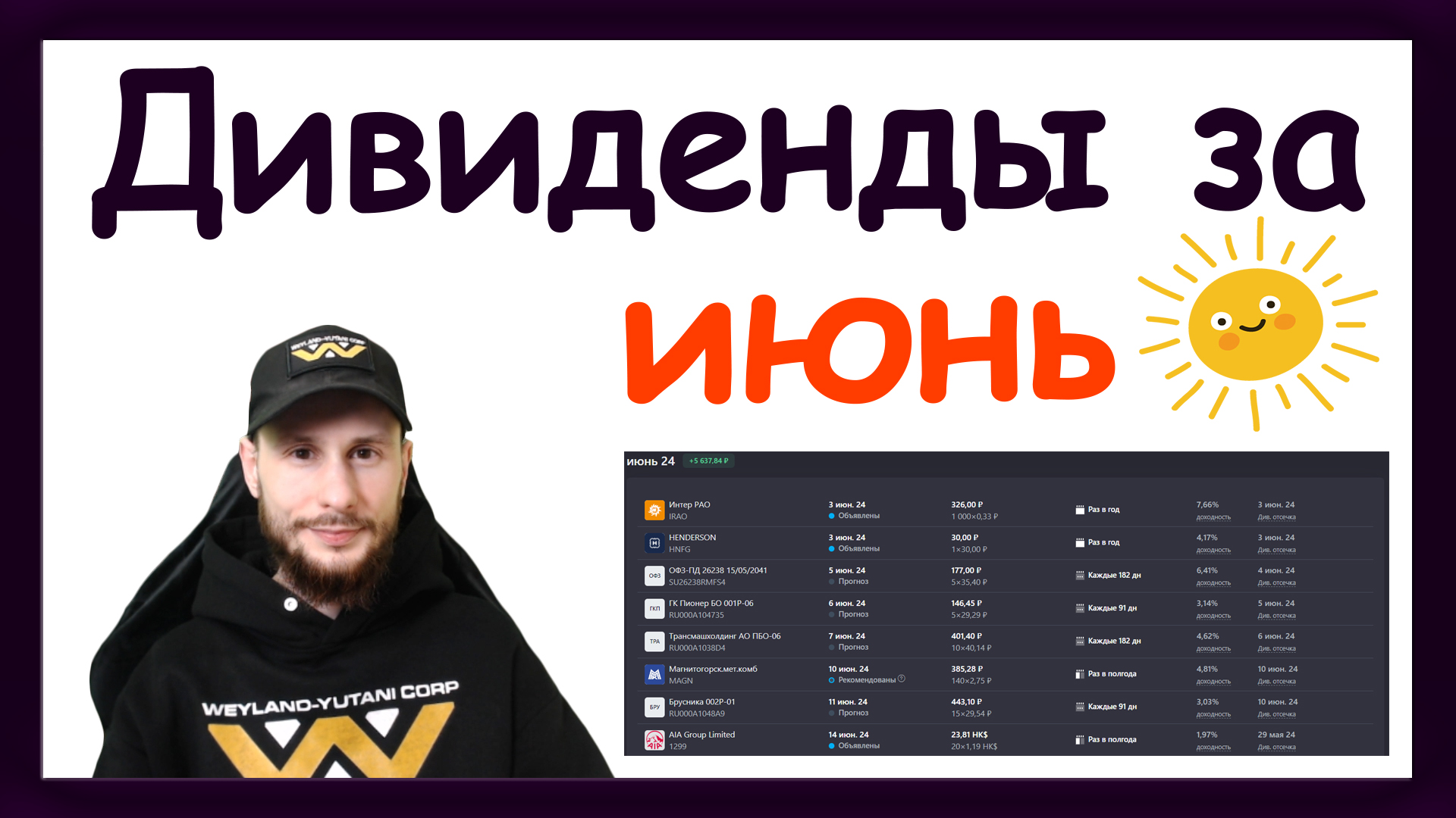 Дивидендная зарплата за июнь 2024 года. Показываю какие активы купить, чтобы получить пассивный доход в июне 2024 года. Сервис Snowball: https://bit.ly/3oxBdWY Промокод на 10% скидку: lobastovpavel С тебя лайк и приятного просмотра!😊👍 📌Полезные ссылки и контакты👇 ✧Вконтакте: https://vk.com/lobastov_pavel ✧Телеграм: https://t.me/lobastov_pavel ✧Мой инвестиционный портфель (фондовый рынок): https://bit.ly/3x18I7y ✧Мой инвестиционный портфель (составной): https://bit.ly/3UFm71K ✧Дзен: https://zen.yandex.ru/lobastov_pavel ✧Ютуб: https://www.youtube.com/c/PavelLobastov ✧Рутуб: https://rutube.ru/u/PavelLobastov/ 📊Сайт для учёта инвестиций Snowball: https://bit.ly/3oxBdWY Промокод на 10% скидку: lobastovpavel 🎬Обзор сервиса для учёта инвестиций Snowball: https://rutube.ru/video/7cf82b457b98509d8bafb2d49506d5bf/ ✧Сайт для учёта инвестиций Intelinvest: https://bit.ly/36E3W1B Промокод на скидку: EI5YYMYO5GJ2 ✧Инвестиции в коммерческую недвижимость Aktivo: https://bit.ly/3UmRnCy 🎬Инвестиции в недвижимость (подробный видео обзор): https://rutube.ru/plst/366432 🎬Инвестиции с нуля: https://rutube.ru/plst/274360 🎬Инвест-Шоу: https://rutube.ru/plst/274673 🎬Дивидендная зарплата: https://rutube.ru/plst/274674 🎮Игровой канал: https://rutube.ru/u/lobastovplay/ 💲Донат: https://www.donationalerts.com/r/lobastov_pavel 🔗Таймкоды из видео: 00:00 – Начало видео. 01:24 – Календарь выплат дивидендов за 2024 год. 02:34 – Моя дивидендная зарплата за июнь 2024 года. 02:43 – Что такое дивидендная отсечка (дивотсечка). 03:12 – Дивиденды Интер РАО (IRAO). 02:27 – Дивиденды HENDERSON (HNFG). 03:42 – Купоны ОФЗ-ПД 26238 (SU26238RMFS4). 04:01 – Купоны ГК Пионер БО 001P-06 (RU000A104735). 04:33 – Купоны Трансмашхолдинг АО ПБО-06 (RU000A1038D4). 04:48 – Дивиденды ММК (MAGN). 05:09 – Купоны Брусника 002Р-01 (RU000A1048A9). 05:23 – Дивиденды AIA Group Limited (1299). 06:22 – Купоны Балтийский лизинг ООО БО-П08 (RU000A106EM8). 06:45 – Дивиденды Северсталь (CHMF). 07:34 – Дивиденды Северсталь (CHMF). 07:12 – Купоны Лидер-Инвест АО БО-П03 (RU000A103QH9). 07:30 – Купоны ОФЗ-ПК 29010 (SU29010RMFS4). 07:51 – Дивиденды The Hong Kong and China Gas Company Limited (0003). 08:20 – Купоны Башкирская содовая 001Р-02 (RU000A101UR4). 08:35 – Купоны Уральская Сталь БО-001Р-01 (RU000A105Q63). 08:51 – Купоны Минфин Ульяновской области 35002 (RU000A101U61). 09:16 – Сравнение дивидендов за 5 лет. 09:57 – Как найти мой инвестиционный портфель. 11:13 – Как оформить подписку на сервис? 12:12 – Инвестиции в коммерческую недвижимость AKTIVO. 15:19 – Вся статистика пассивного дохода. 17:04 – Сравнение моих дивидендов за июнь и в общем по годам. 18:07 – Окончание видео. 👋😀Привет, меня зовут Павел Лобастов. На этом канале ты увидишь видео про инвестиции и финансовую грамотность. Минимум воды - максимум полезной информации. Тут каждый найдёт то, что ему будет по душе. В общем добро пожаловать на канал, подписывайся, располагайся, тебе тут рады!😇 🚀Выпуск 432. Дивиденды 2024. Про инвестиции с нуля, чтобы получать пассивный доход. В этом видео я показываю облигации и акции, по которым можно получить купоны и дивиденды в июне 2024 года. Также я показываю свои инвестиции в коммерческую недвижимость и пассивный доход оттуда. По сути это дивидендный календарь на будущий месяц. Внимание! Это видео не является индивидуальной инвестиционной рекомендацией. Каждый принимает решения самостоятельно. #дивиденды #инвестиции #павеллобастов #pavellobastov #акции #облигации #купоны #пассивныйдоход #дивидендныйкалендарь