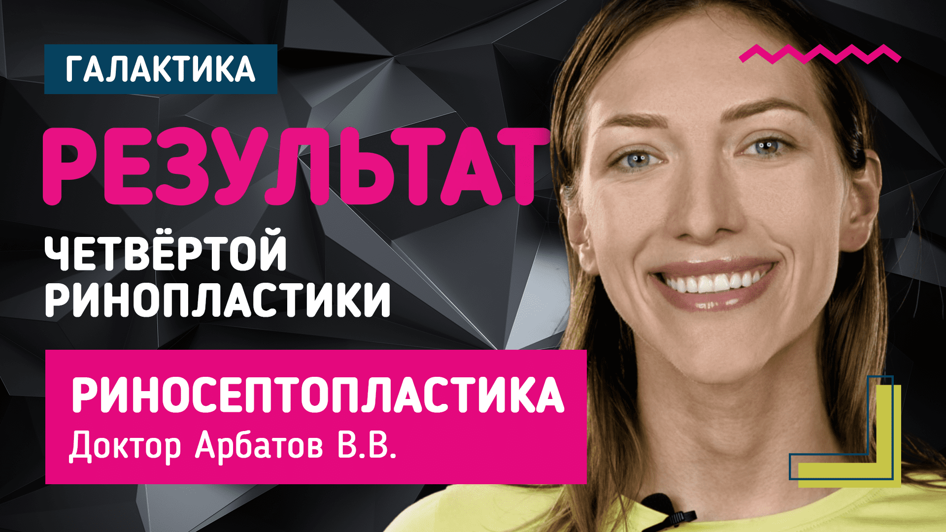 Прежде чем Яна попала в руки Вячеслава Витальевича, она перенесла три операции, которые были очень не удачные. Яна не верила, что четвёртая операция ей поможет, так как всегда есть риск, что если три предыдущие операции были не удачные, то и четвертая будет неудачная. Но все получилось! И Яна счастлива! ⌚ Нажмите на цифры для навигации по времени ролика: 0:01 Пациентка - знакомство 0:05 Комментарий пациентки о предыдущих операциях 0:15 Комментарий Арбатова В.В. о рисках операции и результате 0:36 Слова благодарности пациентки клинике "Галактика" и Арбатову В.В. 0:47 Комментарий пациентки о предыдущей операции у Арбатова В.В. 1:11 Комментарий Арбатова В.В. по результатам операции Официальный сайт: http://galaktika.clinic ? +7 (495) 648 68 38 ? info@galaktika.clinic Мы в соцсетях: INSTAGRAM: https://www.instagram.com/galaktika.clinic FACEBOOK: https://www.facebook.com/galaktika.clinic #Галактика_клиника #Галактика_пластика #galaktika_clinic #ринопластика #ринопластикамосква #сделатьринопластику #сделатьринопластикувмоскве #пластиканоса #пластиканосамосква #темпоропластика #сделатьтемпоропластику #сделатьтемпоропластикувмоскве