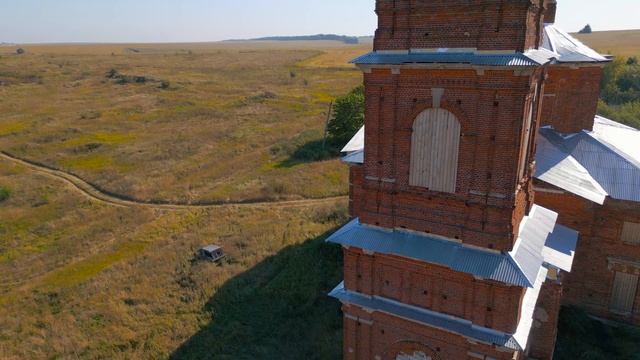 Большая заброшенная церковь впечатляющего вида в заброшенном селе