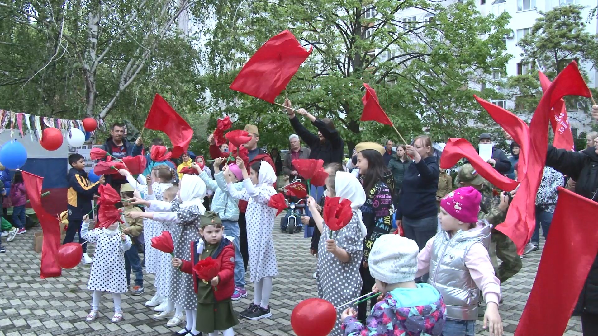 Праздничное мероприятие, приуроченное ко дню Великой Победы состоялось во дворе на улице Ленина 171. Организаторами праздника выступили общественная организация родителей детей инвалидов «Радость жизни» и детский дворовой клуб «Радость моя». А главными звездочками концерта стали дети из многодетных семей, а также ребята с ограниченными возможностями здоровья.