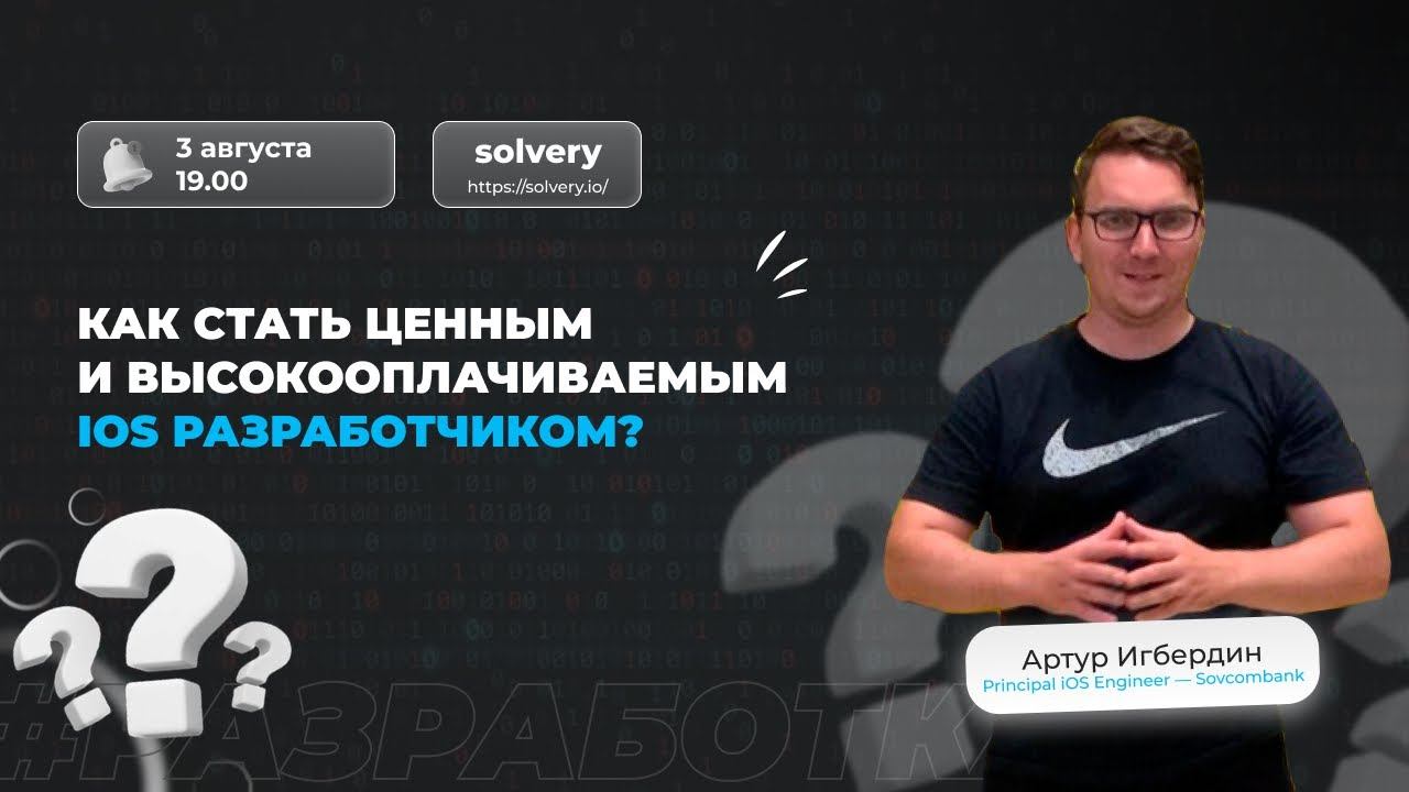 Артур Игбердин, IOS разработчик в Sovcombank, расскажет про ключевые навыки IOS-разработчика, которые необходимо иметь для того, чтобы стать ценным кадром на рынке труда, как их приобрести и развивать. Программа: — Ключевые навыки IOS-разработчика, как их приобрести; — Система прокачки знаний: кодовая база, сжатые конспекты, петля обучения, прокачка навыков; — Social Proof: доказательство знаний и умений. Артур Игбердин — IOS разработчик в Sovcombank. 8+ лет занимается мобильной разработкой (4+ года — Swift, 3+ года — ObjC). На Solvery (https://clck.ru/sQa2K) Артур обучает IOS-разработке с нуля, готовит к собеседованиям по техническим вопросам, консультирует по карьерному развитию, помогает готовить питчи на английском языке для прохождения собеседования за рубежом. ---------------------------------------- Подписывайтесь на наш канал, чтобы не пропустить анонсы новых прямых эфиров. А также заглядывайте в наши соцсети, там много полезной информации: https://www.instagram.com/solvery.io/ https://vk.com/solvery_io Больше мероприятий: https://clck.ru/sQVfK ---------------------------------------- В Solvery за знаниями приходят как начинающие, так и опытные IT специалисты. Наши менторы помогают решать самые разные задачи благодаря индивидуальному подходу к вашему запросу: будь то трудоустройство, повышение грейда, решение сложной технической задачи или подготовка портфолио. Менторы Solvery — это специалисты Middle+, Senior уровня из крупных IT-компаний: Ozon, Vk, Яндекс и многих других. На сервисе уже прошло более 15000+ занятий. Выбрать ментора: https://clck.ru/sQa3W