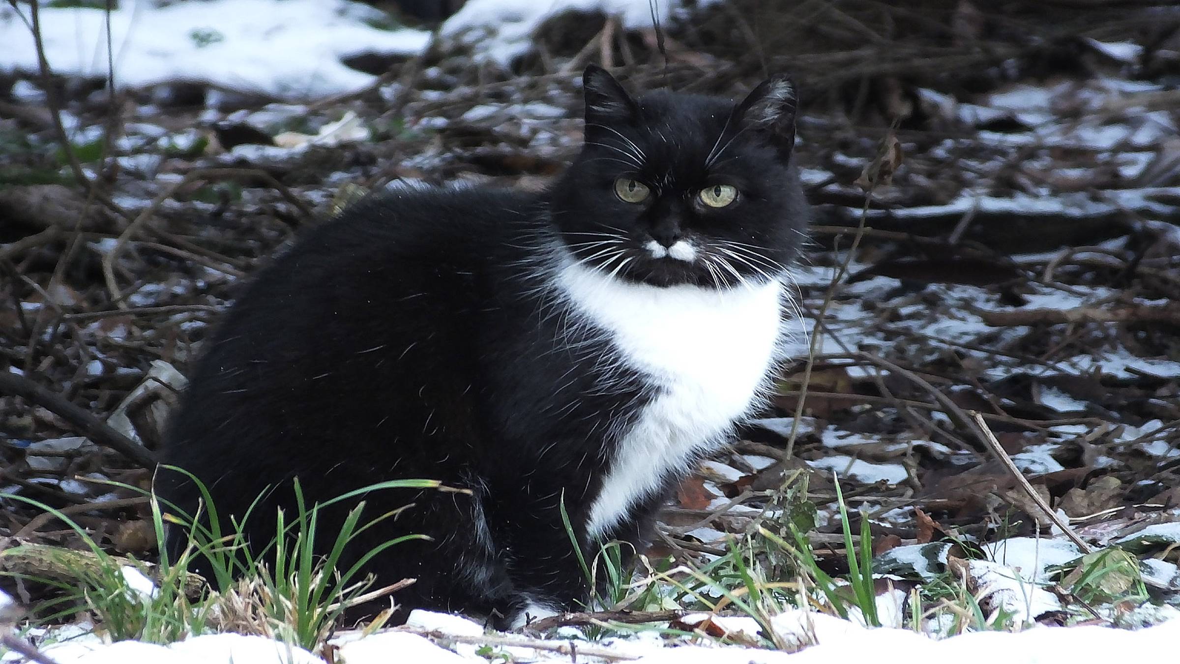 Не только я поджидаю птиц около кормушек, но и коты. В кадр они попадают часто. И, если при мне поймать птицу им пока не удавалось, то сырок и фарш коты пробовали