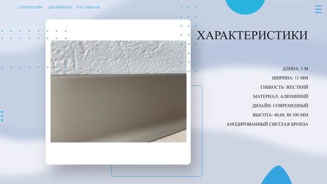 Официальный магазин завода Производителя: https://alyuminievyjplintus.ru/ Купить Плинтус алюминиевый Л-образный АНОДИРОВАННЫЙ СВЕТЛАЯ БРОНЗА: https://alyuminievyjplintus.ru/item/11161-plintus-alyuminievyjj-l-obraznyjj-anodirovannyjj-svetlaya-bronza-100kh11kh3000-mm Л-образный плинтус из алюминия высотой 60 мм. находит отличное применение при отделке помещений в стиле Premium, Hi-Tech или Минимализм. Так же довольно часто используется в интерьерах автосалонов и бизнес-центров. Плинтус имеет привлекательный дизайн, отличное качество, а в совокупности более привлекательной ценой, по сравнению и зарубежными аналогами. Возможна окраска в различные цвета по RAL. Для плинтусов есть комплектующие из ПВХ и из алюминия. В ролике вы увидите: ▶ Плинтус алюминиевый Л-образный АНОДИРОВАННЫЙ СВЕТЛАЯ БРОНЗА ▶ Стоимость, скидки и характеристики Тайминг: 00:00 Вступление 00:06 Описание и цена 00:14 Характеристики 00:20 Дополнительная информация (Доставка, Оплата, Скидки, Обмен, Возврат) 00:30 Магазин завода производителя Характеристики: ДЛИНА: 3 М ШИРИНА: 11 ММ ГИБКОСТЬ: ЖЕСТКИЙ МАТЕРИАЛ: АЛЮМИНИЙ ДИЗАЙН: СОВРЕМЕННЫЙ ВЫСОТА: 40,60, 80 100 ММ ЦВЕТ: АНОДИРОВАННЫЙ СВЕТЛАЯ БРОНЗА Интересные ролики про плинтус: Плинтус алюминиевый 80х10 черный матовый https://youtu.be/oHVCEHSvDDU?si=-nQi4ewE5WfC9qJC Плинтус алюминиевый 60х11 светлая бронза https://youtu.be/ihlQM3PwBrM?si=VpfARSQvz4sh0oqf Плинтус алюминиевый 60х11 светлая бронза https://youtu.be/rhH4Uc98YVw?si=99Vh79yKL0WjI38Z Подписывайтесь на наш канал, следите за новыми полезными роликами, пишите комментарии и приятного просмотра! Сайт: https://alyuminievyjplintus.ru/ #плинтус #плинтусполоса #алюминиевыйплинтус #напольныйплинтус #плинтуслобразный