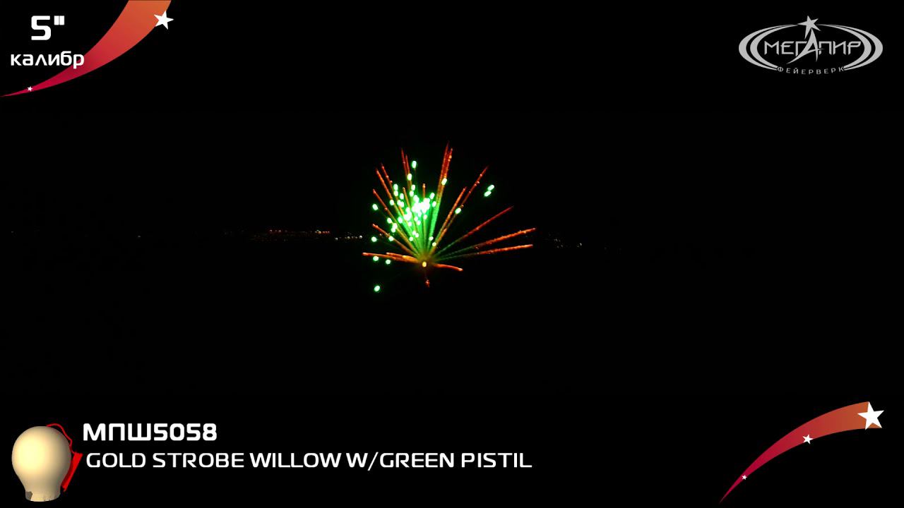 Пиротехнический шар 5" Мегапир GOLD STROBE WILLOW W/GREEN PISTIL МПШ5058