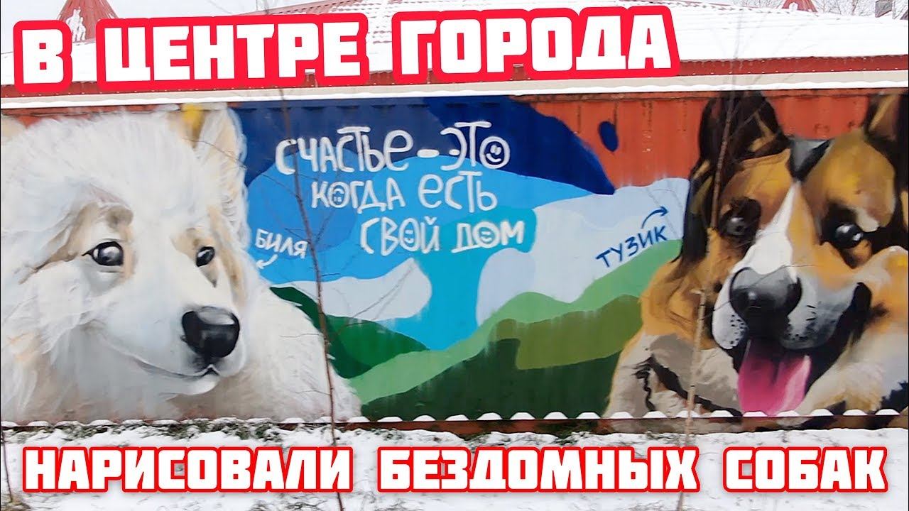 Нарисовали в центре города бездомных собак. Биля и Тузик.