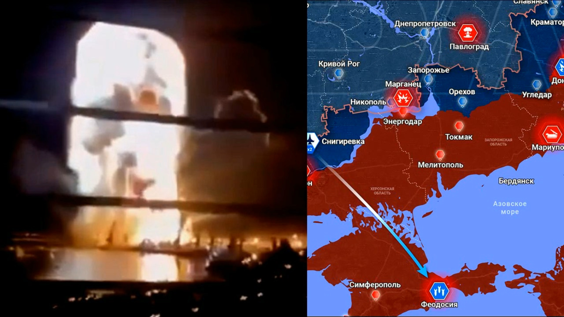 Карта боевых действий. Удар по Феодосии. Уничтожен корабль Черноморского флота