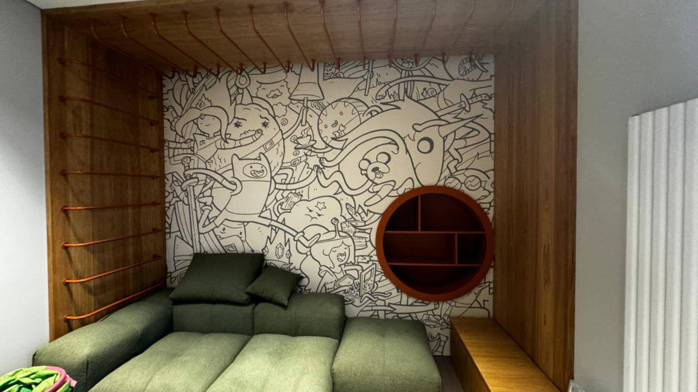 Слайд шоу. Встраиваемая,круглая полка и 2 детские кроватки с подъемным механизмом.