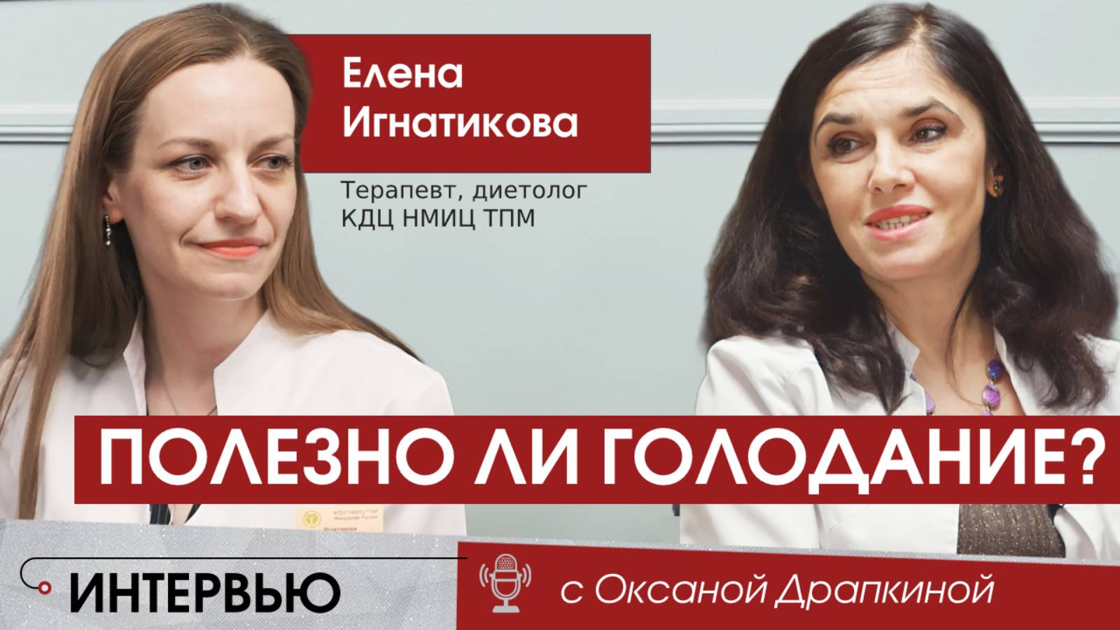 Тема голодания вызывает много споров и разногласий. Некоторые люди решают сделать это для похудения или очищения организма, однако важно помнить, что отказ от еды может привести к серьезным последствиям для здоровья. В интервью Оксане Драпкиной Елена Игнатикова терапевт, диетолог, зам.главного врача по клинико-экспертной работе КДЦ НМИЦ ТПМ рассказывает, почему голодание не безопасно, кому категорически нельзя голодать, а также какие методы поддержания здорового рационального питания существуют. 00:00 – Питание – основа здоровья человека 02:18 – Что такое правильное питание 02:50 – Всегда ли голодание – это полезно? 03:35 – Интервальное голодание 04:17 – Что происходит с организмом во время голодания? 05:20 – Длина теломер и голодание 06:40 – Полезны ли клизмы? 08:15 – С чего надо начинать похудение? 10:25 – 5 советов от диетолога ------------------------------------------------------------------------------------ Call-центр НМИЦ терапии и профилактической медицины +7 (495) 212 07 13 ------------------------------------------------------------------------------------ Вы также можете подписаться на аккаунты профессора Оксаны Драпкиной Telegram https://t.me/drapkinaom RuTube https://rutube.ru/channel/24681275/ ВКонтакте https://vk.com/oxanadrapkina YouTube https://www.youtube.com/@DrapkinaOM/