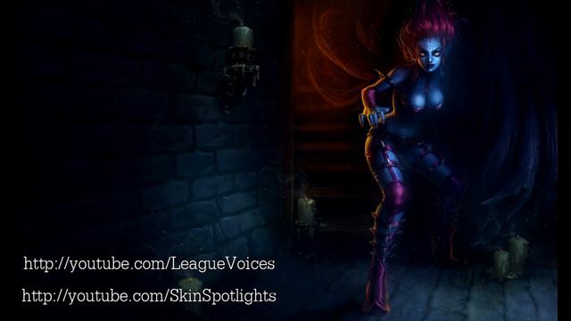 This is League of Legends Champion Evelynn's voice in English All sounds are taken from the ingame voice over sound banks, Champion Selection voice is not in the video. Splash art is taken from in game as well. ------------------------------------------------------------------------------ Haven't got a League of Legends Account? Signup here: http://signup.leagueoflegends.com/?ref=4df8eae193c2f972338226