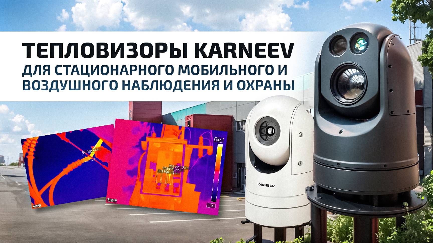 https://www.karneev.com Поворотные тепловизоры Стационарные тепловизоры Охранные тепловизоры IP тепловизоры Тепловизоры для БПЛА Зум-тепловизоры