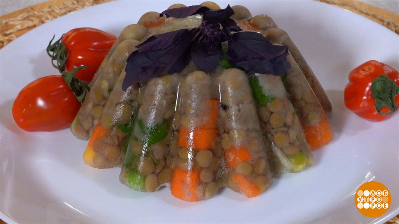 Готовим постный холодец из чечевицы и овощей. Доброе утро. Фрагмент выпуска от 18.06.2025