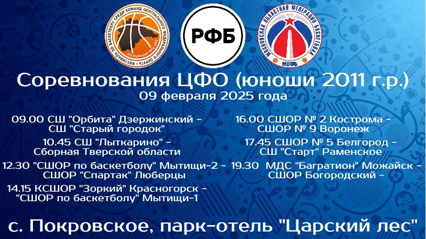 09.02.25 с 9.00. Соревнования ЦФО (юноши 2011 г.р.)