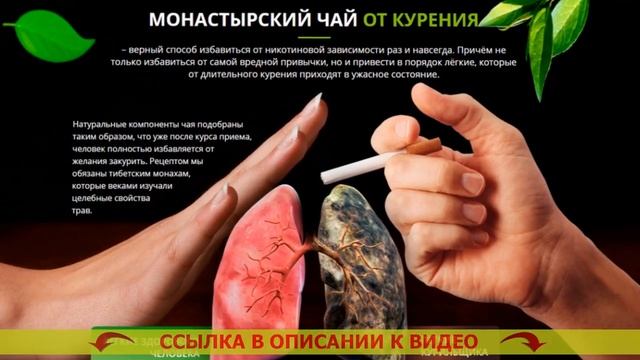 ⤵⤵ ЖМИ НА ССЫЛКУ В КОММЕНТАРИЯХ ⤵⤵ 😎 МОНАСТЫРСКИЙ ЧАЙ ОТ КУРЕНИЯ! БРОСИТЬ КУРИТЬ ЛЕГКО! Памятка как бросить курить Монастырский чай – натуральное вещество, помогающее всего за 3 недели до конца отделаться от никотиновой зависимости - Без никотиновых пластырей - Без никотиновых жвачек - Без таблеток и БАДов - Без книг и кодирования Каким способом Монастырский чай позволяет бросить курить? Статистика утверждает, лишь 3-4% заинтересованных бросить курить сигареты, в конце концов отделываются от привычки. Курение — это одна из мощных зависимостей во всем мире, сопоставимая с зависимостью от наркотиков. Устройство организма человека таково, что едва лишь единицы имеют все шансы бросить курить сигареты. Человеческий разум не распознаёт табакокурение как смертельную привычку и просит новую и новую порцию никотина. Безоговорочное большинство бросающих курить самостоятельно имеют дело с множеством сложностей: - Имеют лишний вес после бросания - Чуют нервность, долгое желание бросить курить - Сохнут от хандры, назойливых мыслей и паники - 90% бросивших курить начинают вновь. Для решения вопросов с этими затруднениями был собран индивидуальный состав Монастырского чая, рассчитанный лично для курильщиков. Каким образом работает Монастырский чай? Монастырский чай — это превосходное средство, помогающее справиться с причиной охоты курить сигареты. Почему? - Чай выводит из организма 99,99% никотина на протяжении 3х недель. Привычка отходит на вполне физиологическом уровне, организм быстро забывает о никотине. - Чай выводит из человека токсины, делая лучше самочувствие. Вы теперь уже не пожелаете вернуться к одышке, неприятному аромату изо рта, вялости. Зачем бросать курить женщине. - Чай укрепляет и успокаивает психику. Монастырский чай против курения отзывы. Вы не вспомните о стрессе, паническом желании выкурить сигаретку и неизменной нервности. 10 День без сигарет. - Чай успокаивает чрезмерный аппетит. Отказ от курения что происходит. Вы не станете хотеть съесть излишнего, потому, что Ваш организм будет в мирном и расслабленном состоянии. Препарат бросить курить. Какие изменения проистекут в Вашем организме примерно через 3 недели? - Вы полностью очистите Ваш организм от смол, шлаков и никотина, скопившихся во внутренних органах и костном мозге. Можно ли резко бросать курить последствия. - Ваши лёгкие сумеют преобразовывать на 80% больше кислорода, по причине этого возрастет дееспособность. Травы которые помогают бросить курить. - Вы целиком и полностью отделаетесь от стрессовости, непрерывного желания подымить и отвлечься. Сколько времени восстанавливается организм после курения. - Вы будете выглядеть лучше, народится охота активности и физических нагрузок. Эффективное средство от курение. Вы