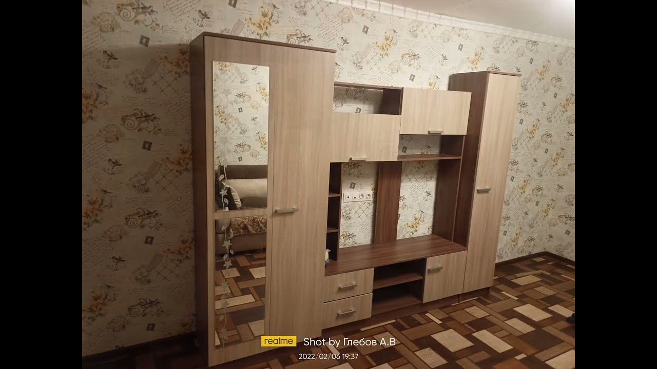 Гостиная Марта-11 прекрасно впишется в любой современный интерьер. По бокам ниша под телевизор оборудована полками для небольших предметов декора – это поможет создать теплую домашнюю атмосферу. Зеркальная вставка во весь рост визуально увеличивает помещение и добавляет света. Фрезеровка на стекле добавляет шарма в интерьер гостиной. Гостиная состоит из платяного шкафа со штангой, центральной части и пенала с полками. Конструкция стенки позволяет осуществлять разные варианты сборки. Корпус ЛДСП, фасад: ЛДСП. Размер стенки: 270х210х50см