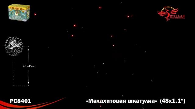 РС8401 Малахитовая шкатулка Батарея салютов 48 залпов калибром 1,1 дюйм (28 мм)