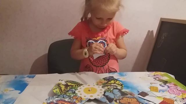 Развивающее видео для детей. Алиса делает часы-бабочку. Оригинальная заготовка часов с помощью яркой мозаики.