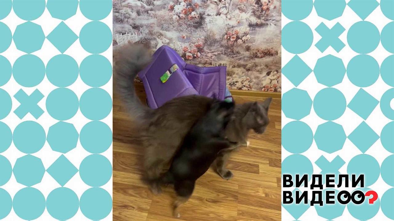 Битва года: чихуахуа Даниэль выгоняет мейн-куна Харитона из его домика!