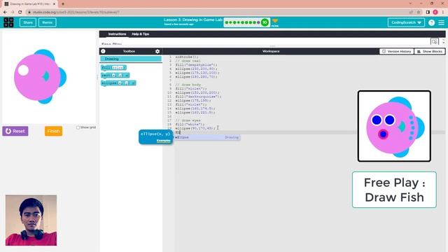 Code.org Lesson 3 Drawing in Game Lab | Free Play of drawing Frog's Face