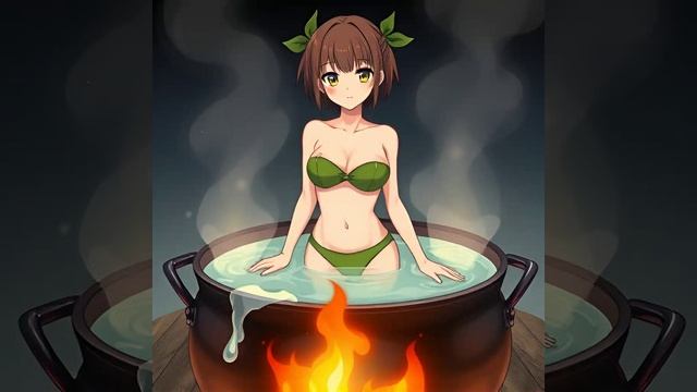 Красавицы купаются в котлах с кипятком над огнем.