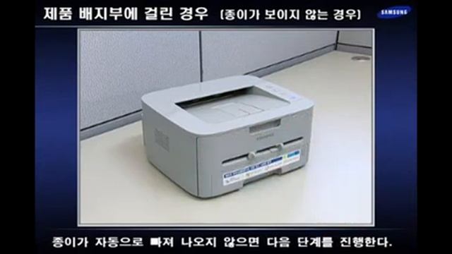 [삼성전자 프린터] ML-2450, ML-2850 시리즈 용지가 용지 배출구에 걸린 경우 - 종이 안보임