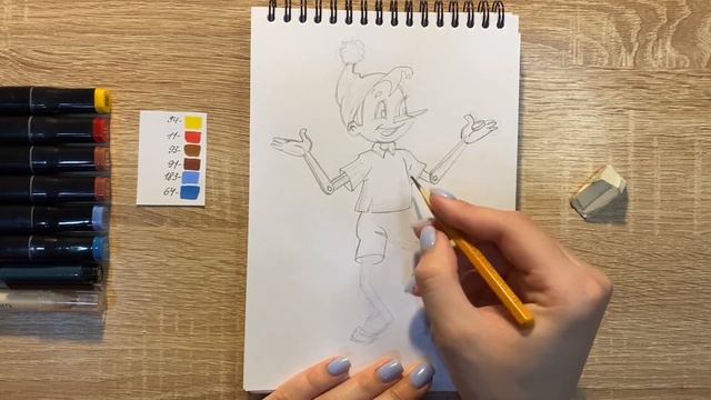 Как нарисовать Буратино карандашом и скетч маркерами | Рисунок для детей, поэтапно и легко