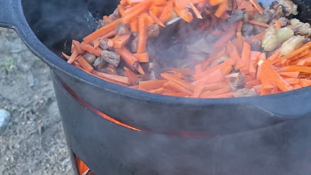 готовим плов после работы. отдыхаем. баня