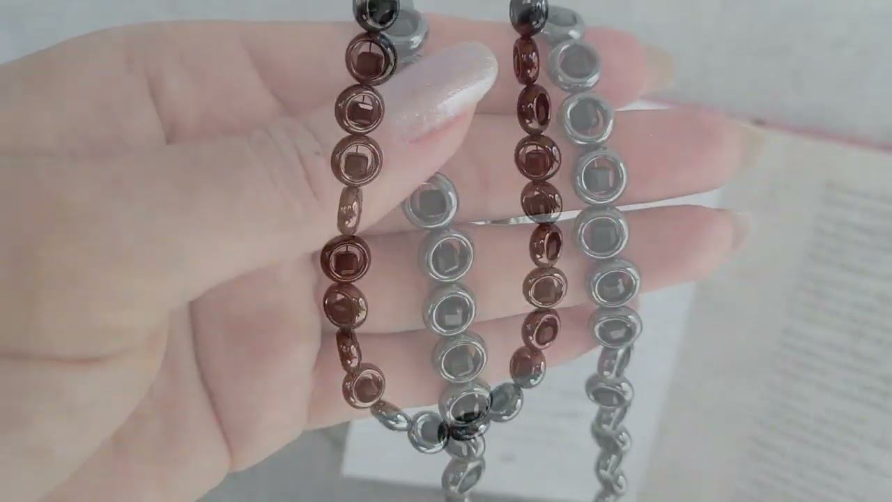 Колье из гематита, черного турмалина