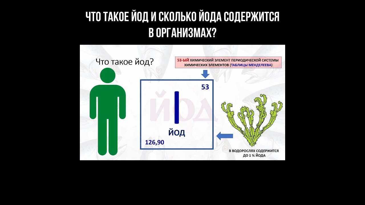 Что такое йод? Йод - это химический элемент, пятьдесят третий по номеру Периодической Системы Химических Элементов Д. И. Менделеева с атомной массой 126,90. Его содержание в природе, в живых организмах, больше всего в водорослях - до одного процента йода, а в человеческом организме всего 12 до 200 миллиграммов йода. Десятое тысячи доля процента. #йод #водоросли #микроэлемент