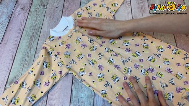 336294 Комбинезон со ступней на кнопках универсальный с ярким принтом персиковый