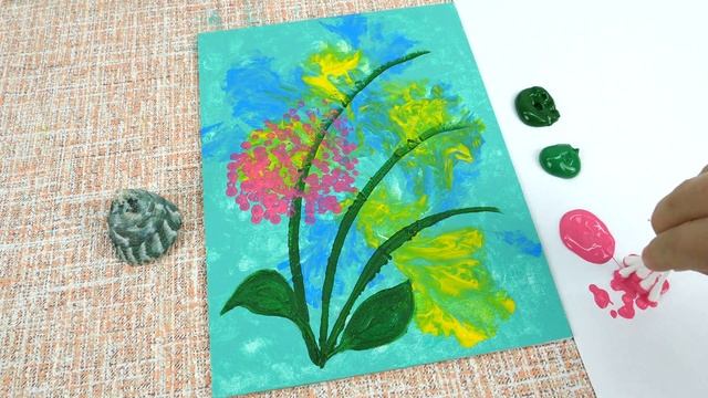 Простой букет цветов Акриловая живопись на холсте Пошаговая удовлетворяющая картина ASMR