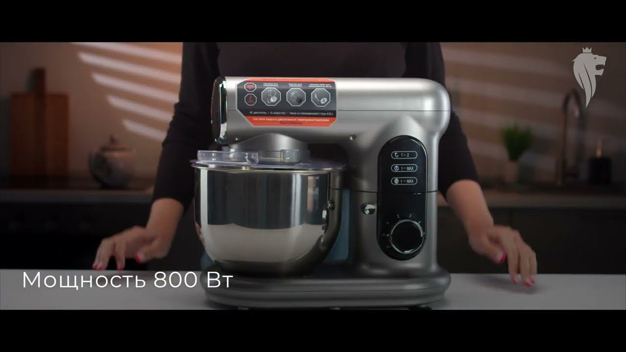 Артикул 105820 Мощность 800Вт АС двигатель Низкий уровень шума Чаша из нержавеющей стали 4,8л Планетарное вращение насадок 6 скоростей Импульсный режим Насадка венчик Насадка для теста Насадка для смешивания Прозрачная крышка для чаши с окном для добавления ингредиентов Система защиты двигателя от перегрузки/перегрева Smart Defense Прорезиненные ножки против скольжения 2 года гарантии