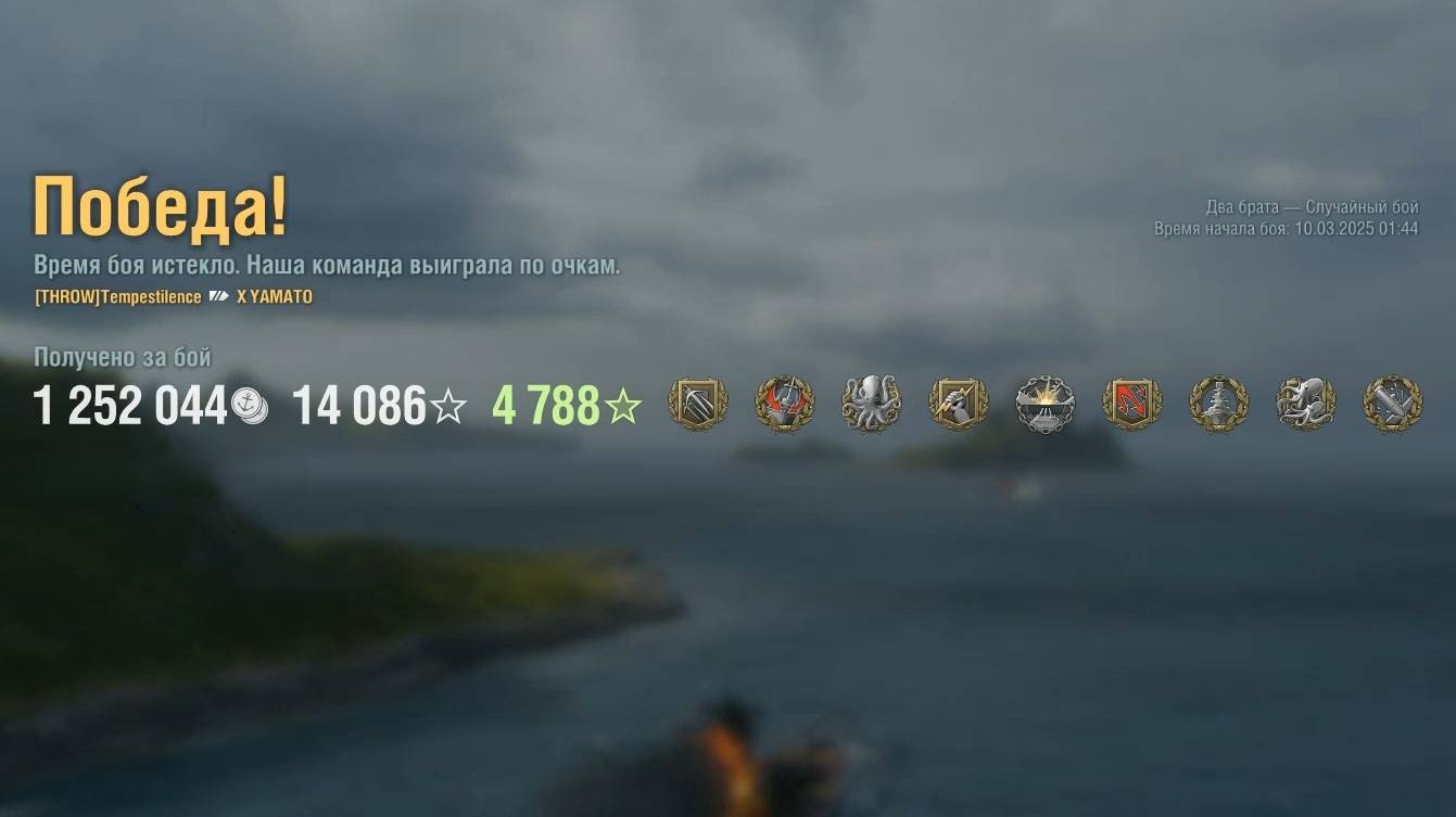 Линкор Yamato. Игрок: Tempestilence (EU). Карта: Два брата - Случайный бой. Урон: 327к. Yamato - Линкор Японии 10 уровня.