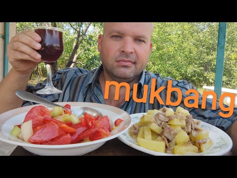 МУКБАНГ КАРТОФЕЛЬ со свининой/ОБЖОР салатик