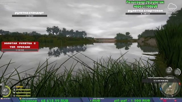 Поддержка донатом https://new.donatepay.ru/@1032463 Альтернативный донат https://www.donationalerts.com/r/kalyamba11 5536913964533059 карта Тинькоф Если стрим лагает,смотри стрим на трово https://trovo.live/s/Kalyamba_na_Ribalke Мой ВК - https://vk.com/kalyantv НИК в игре kalyan11 НАШ ДИСКОРД СЕРВЕР https://discord.gg/4ZzSQkQtsK Заказ водоема на 1 час - 500р ( весь стрим 2500р ) Модерка на канале 1200р ( каждая следующая на 100р больше) Озвучка доната на 40р,50р,100р,200р,300р,500р,1000р ✅Призы в рулетке "ЗОЛОТАЯ" ✔ ЗОЛОТО ✔ ПРЕМ ✔ КАТУШКИ РАПТОР 40, АЗИМУТ 10000, СИЛЬВЕР 80, ТАЙГА с 30 ✔ ПАЛКИ ПИЛКЕРНАЯ, ДОНКА МОРСКИЕ, ✔ РОД ПОД, СТУЛЬЯ ✅Призы в рулетке СТАНДАРТ : ✔ катушка "РАПТОР 40" ✔ катушка "АЗИМУТ 10000" ✔ катушка "ТАЙГА С30, С40," ✔ катушки 60 для медного ( ЭВИИ, НАТОРЫ, ГОЛДА, и тд) ✔ ПИЛКЕРНОЕ УДИЛИЩЕ КОРОЛЕВА ОКЕАНА ✔ Морское Донное удилище ✔ прем ( 3, 7, 30 дней) ✔ золото ( 1, 3, 5, 10, 20 ,50) ✔ билет на море ( 1, 3, 5 дней) ✔ голд наживка и др. ✅Призы в рулетке "СТАРТОВАЯ" ✔ катушка "silver80" ✔ катушка "БЕЛЫЙ КАЛИБР" ✔ катушка "Черный калибр" ✔ катушка "Протон" ✔ катушка "Нарга 6000" ✔ Набор Фидерист и спинингист ✔ Карповик Фортуна ✔ фидерные удилища ✔ прем, золото, алкашка, наживки и тд P.s Рулетка это не казино, а награда за поддержку стримера. Вечный ТОП ПОДДЕРЖКИ (11.05.2024) 1. Dimon_pokemonchik 119 784 2. Interceptor 75 508 3. Skreb79 71 261 4. une personne 68 619 5. Нарвал77 31 550