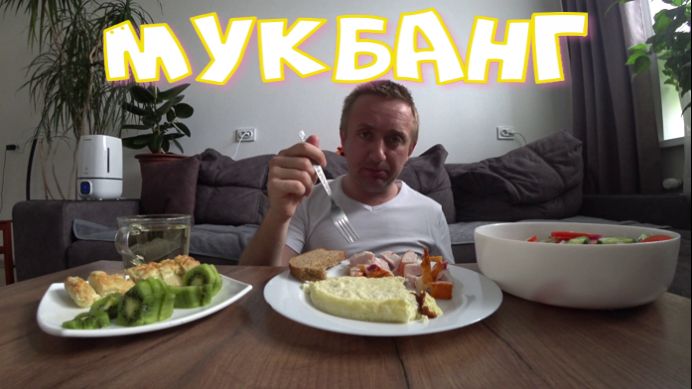 Мукбанг. Завтрак поросенка, испачкал новую футболку.