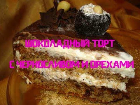 Шоколадный торт с черносливом и орехами ))