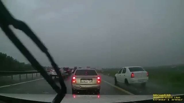 Молния ударила рядом с автомобилем