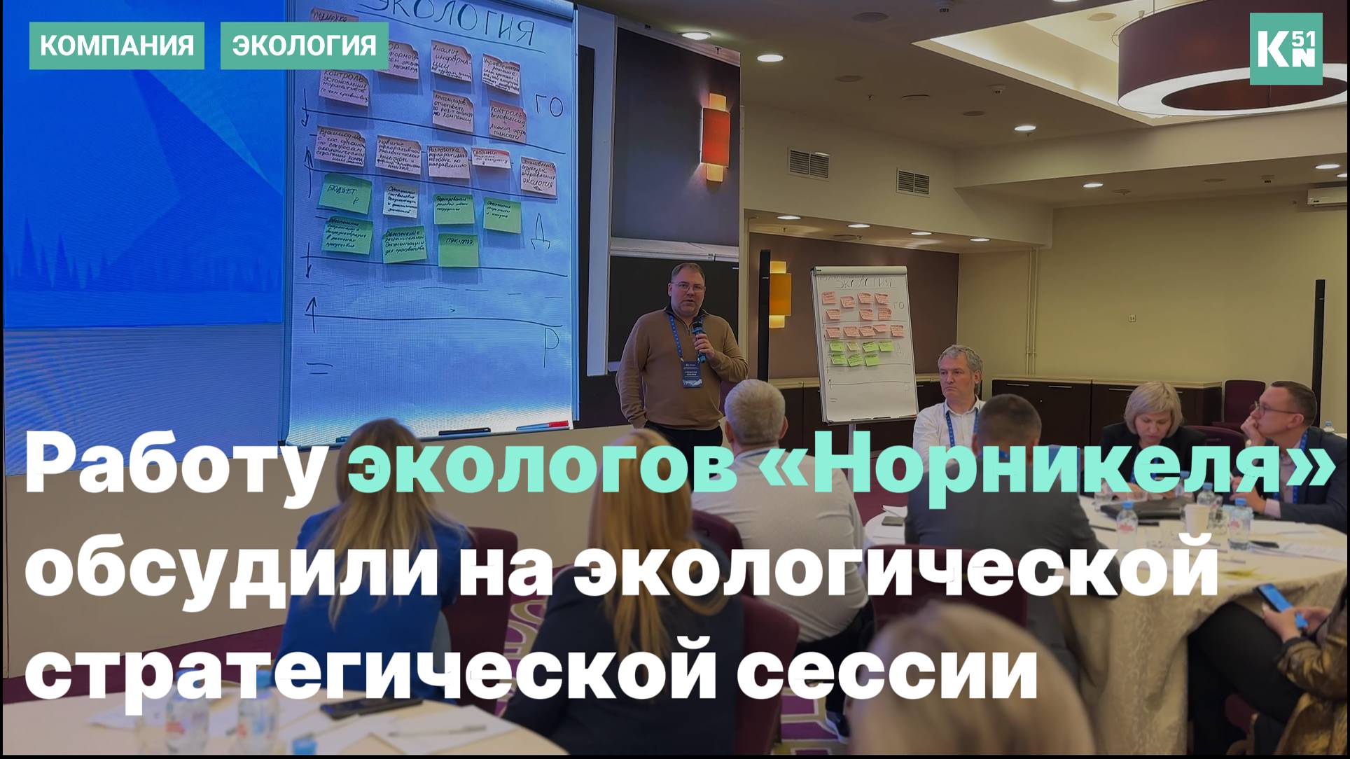 Ежегодная стратегическая сессия собрала 95 представителей группы компаний «Норникель». Обсуждали повышение эффективности, «зеленые» победы, ЭКГ-рейтинг, спасение краснокнижного кита усилиями бизнеса и госструктур и многое другое. Многие вопросы экологи «Норникеля» обсуждали совместно с представителями производства, HR, GR и PR-блоков компании. Видео: Денис ПЛОТНИКОВ / пресс-служба КГМК