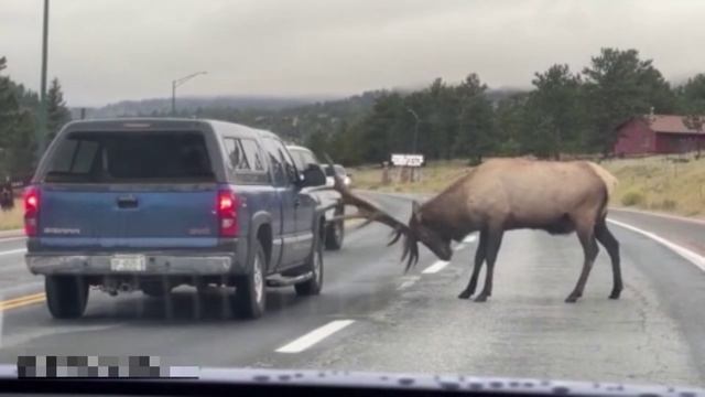 Лось решил проучить не послушного водителя