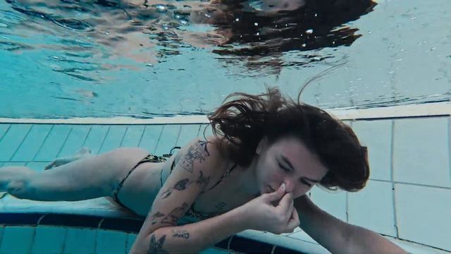 Девушка под водой в бассейне.