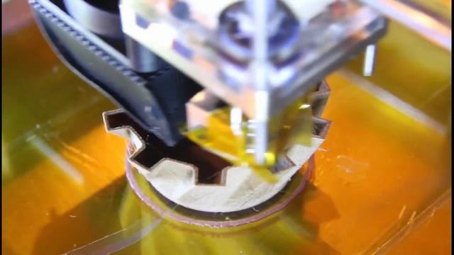 Cura, 0.2mm layer height, 80mm/s Wood reference is LAYWOO-D3 You'll get macro pictures and details on http://betterprinter.blogspot.fr/2012/10/review-wood-filament.html Check also this timelapse featuring brown shades due to varying temperature: http://www.youtube.com/watch?v=WUlAvku019E&feature=plcp