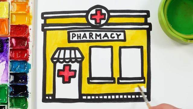 Рисуем здание аптеки - Давайте научимся рисовать! Простое рисование для детей, малышей ясельного во