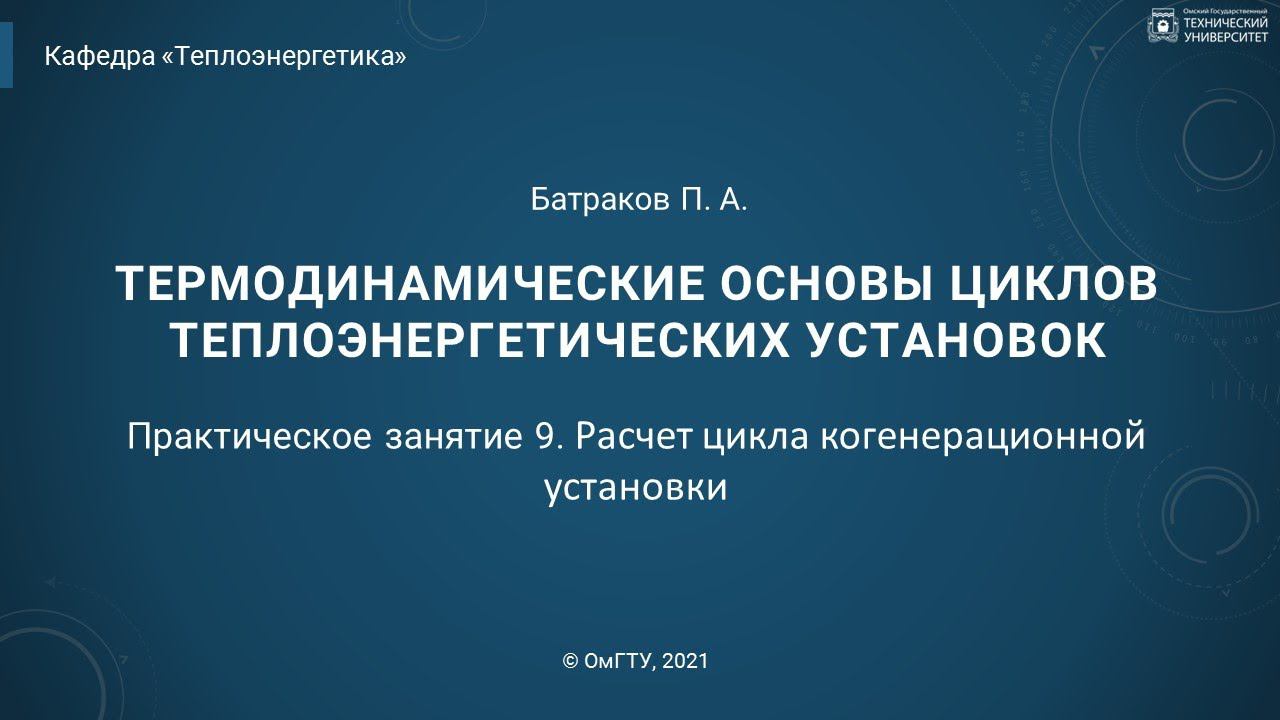 9. Практическое занятие. Расчет цикла когенерационной установки