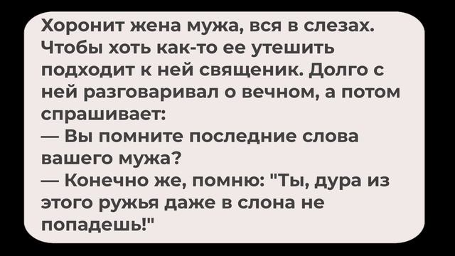 АНЕКДОТЫ. Сборник № 79 #анекдоты #анекдот про #смешные анекдоты #анекдоты самые #анекдот года #анекдоты самые смешные #анекдоты до слез #посмешней анекдот Наш канал создан, чтобы принести еще больше позитивных эмоций. Здесь публикуются видео анекдоты, поднимающие настроения любому и в любой жизненной ситуации. Подписывайтесь если Вам понравилось, ставьте лайки, оставляйте комментарии и делитесь с друзьями. В этом видео используется трек Forever Believe (2:42). Автор трека- Jason Shaw, музыка взята с сайта: https://audionautix.com/, тип лицензии - Creative Commons Attribution 4.0 international License (https://creativecommons.org/licenses/by4.0/)