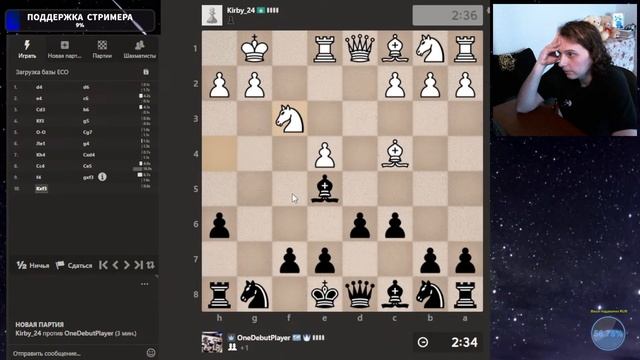Друзья, всем привет. Продолжаю сражения дебютом Эльшада. Шахматы. Блиц 3+0. Если интересно, - подписывайтесь на канал, ставьте лайки, оставляйте комментарии. Поддержка донатом через: DonationAlerts: https://www.donationalerts.com/r/onedebutplayer Бусти: https://boosty.to/onedebutplayer/donate Donatepay: https://new.donatepay.ru/@1272445 Стрим на Boosty: https://boosty.to/onedebutplayer/streams/video_stream Стрим на Твитч: https://twitch.tv/onedebutplayer