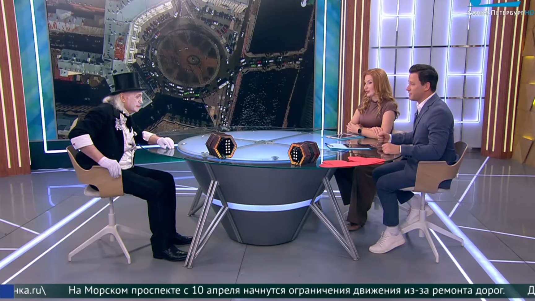 В студии программы «Утро в Петербурге» Роберт Городецкий, клоун-мим театра «Лицедеи».