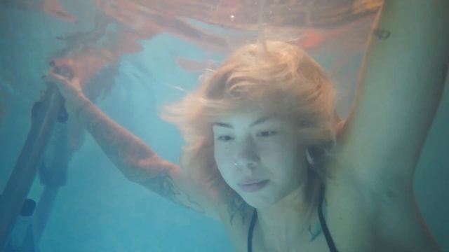 Женщина под водой в бассейне.