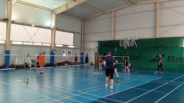 Тренировочная игра в бадминтон через сетку. Играют любители, новички и опытные бадминтонисты. Игра на сборах в доме отдыха Снегири от клуба Искра #badminton #badmintonlovers #badmintonrussia #бадминтон #искра #iskra #snegiri #снегири