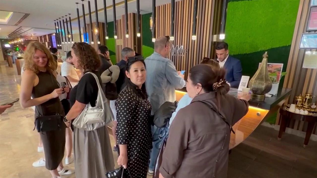 Первый за почти три дня рейс в российскую столицу. На борту туристы, которые застряли из-за закрытого в регионе неба. Еще один аэропорт Эмиратов, в Дубае, огромный международный хаб.