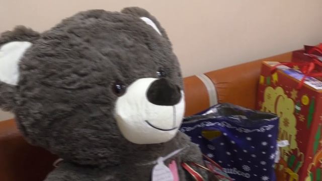 Дед Мороз и Снегурочка дарят подарки шарыповским ребятишкам